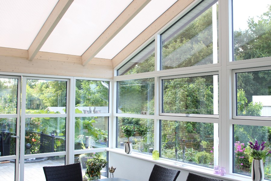 Om du vill kunna använda ditt uterum året runt är en vinterträdgård en utmärkt lösning. En vinterträdgård är ett uppvärmt uterum som kan användas året runt. Eftersom det är en tillbyggnad till huset som ska kunna användas under kalla vintermånader är kanalplasttaket tjockare än det vi rekommenderar för uterum. Det är också viktigt att poängtera att kanalplastskivorna inte gör jobbet själva. För att säkerställa effektiv isolering krävs att golv och/eller fönster också har god isoleringsförmåga, eftersom isoleringsvärdet beräknas för hela byggnaden.